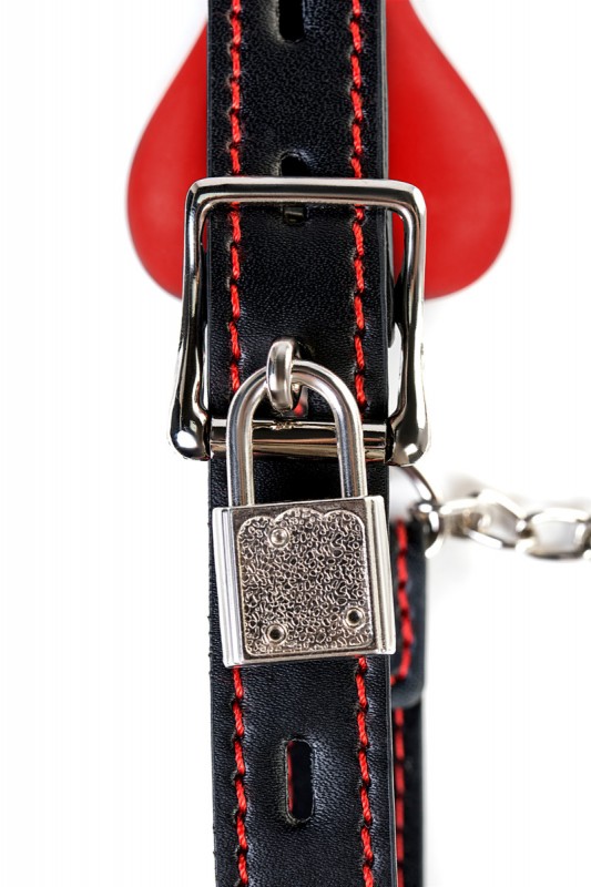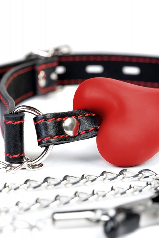 К кляпу при помощи металлических цепочек присоединены зажимы для сосков. Зажимы регулируемые, что позволяет самостоятельно регулировать степень сжатия. Силиконовые наконечники идеальны для самых комфортных ласк, т.к. не натирают и не царапают нежнейшую кожу