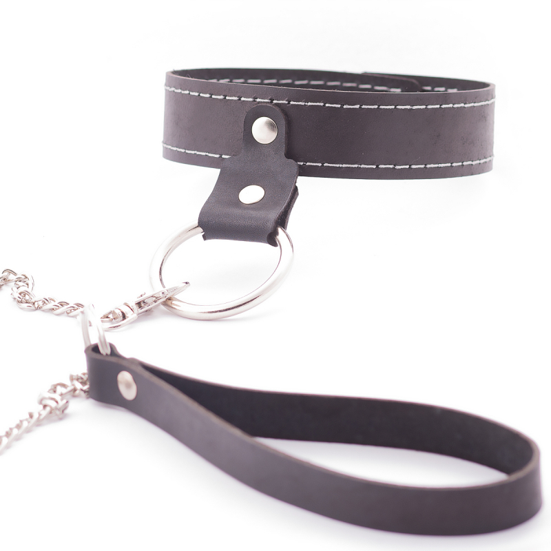Стильный ошейник, из коллекции "Crazy Handmade" с металлическим поводком - отличный БДСМ аксессуар для самой незабываемой сессии!