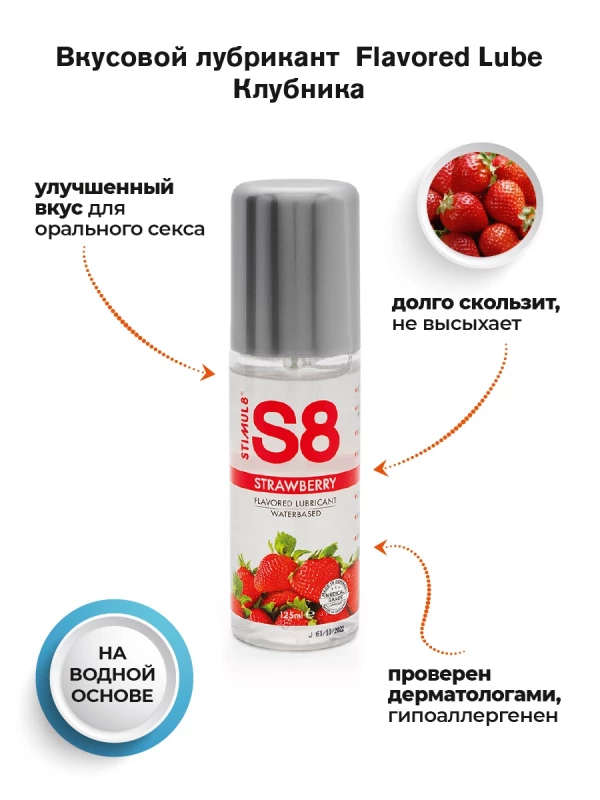 Восхитительный гель с ароматом и вкусом клубники на водной основе "Stimul 8 Strawberry" - идеальная немецкая классика для самых чувственных моментов!