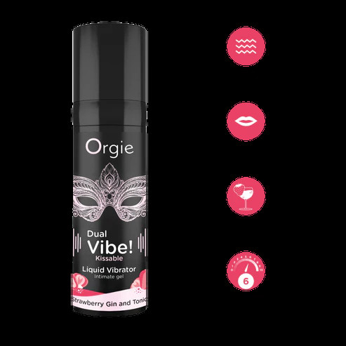 - Жидкий вибратор мощный с охлаждающе-согревающим действием и ароматом и вкусом клубника & джин-тоник "Orgie Sexy Vibe Kissable Liquid Vibrator"